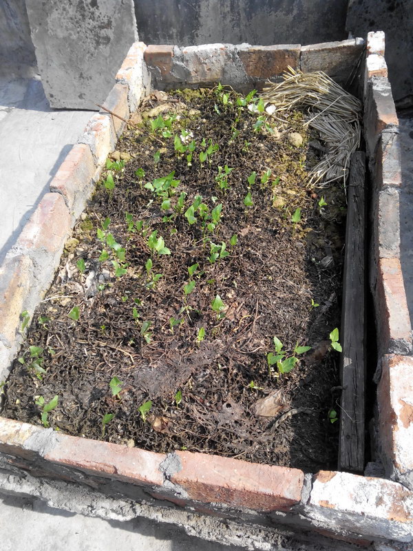 接下来的一段时间,便是不间断地从外面挖些泥土,用蛇皮带装来把花池填满,一些生活中剩菜叶之类的也被丢进去用作沤肥之物。之后我却没有急着种植,任它日晒雨淋。