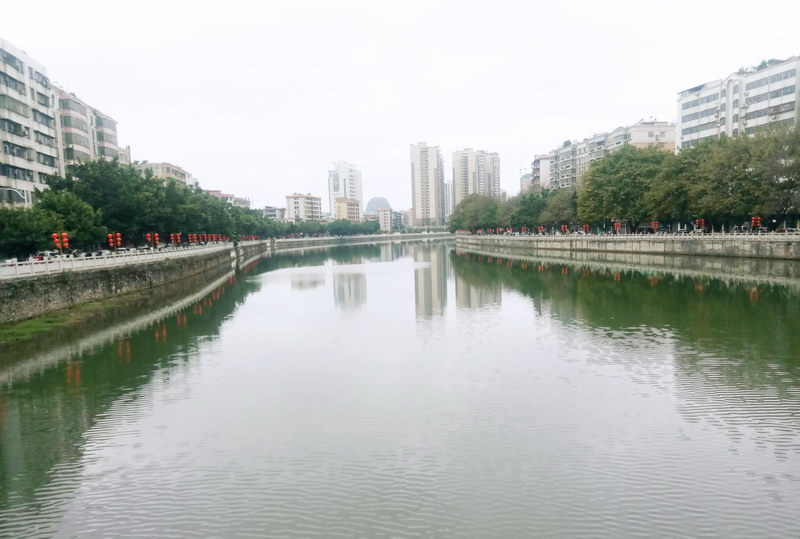 一个人沿着河堤走着,周边节日的繁闹褪去了,小镇回归于平静。唯闻远处不时传来声声爆竹,应是各企业档铺开市迎新了。唯见桥下沉静的河水映着岸上明净清爽的小镇,微风拂过,河面泛起波纹荡漾开去,岸两旁挂于路灯顶端的红色灯笼摇晃着、郁郁葱葱的榕树于水中扭动着,是春天的舞姿吧。河堤两侧斑驳的水泥石子面上爬满了翠绿的苔藓,是欲掩盖些什么,却遮蔽不了岁月的痕迹,宁静的河水宛若一面记录着小镇喜怒哀乐的镜子、一本珍藏着小镇风情故事的画卷。